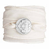 Lassen Sie sich von Filipa verzaubern - einem Wickelarmband aus crème farbiger Seide und einem wunderschönen Zwischenelement aus Silber 925. Das hochwertige Material verleiht diesem Armband eine elegante und zeitlose Ausstrahlung. Mit einer Länge von ca. 38 cm bietet es ausreichend Spielraum zum einfachen und bequemen Umwickeln des Handgelenks. Die dezente Knöpfung auf der Rückseite ermöglicht es Ihnen, Filipa individuell an Ihre Handgelenksgröße anzupassen. Ein wahrhaft luxuriöses Stück, das in keiner Schmuckschatulle fehlen sollte!